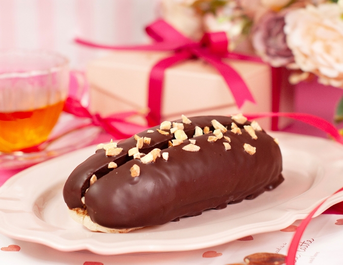 商品特徴:コッペパンを定番の人気チョコスイーツ「エクレア」風に!中には、口どけの良いホイップクリームをサンドしました。