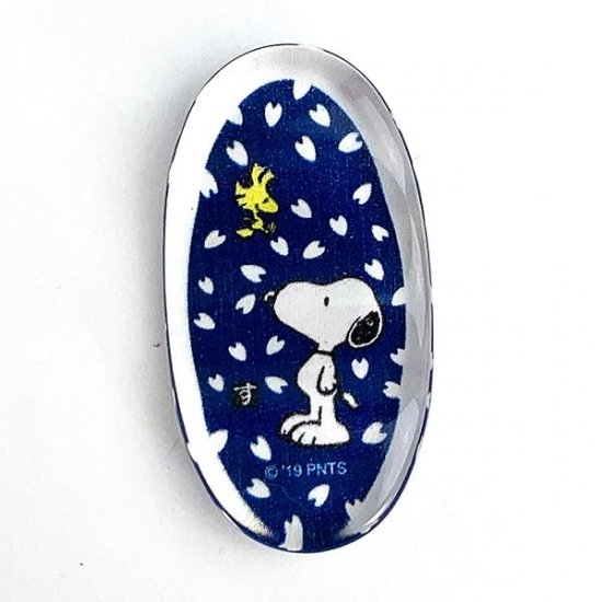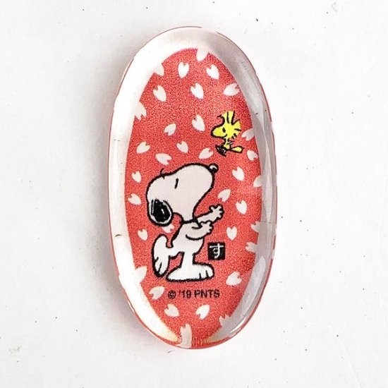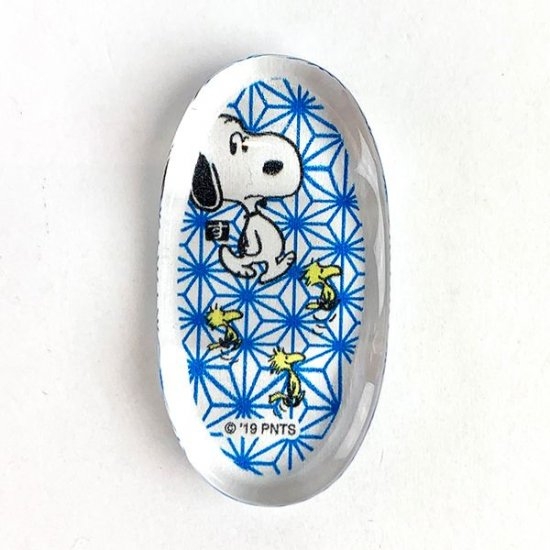 オーバルフォルムのアクリル樹脂製の箸置き。ガラス風の透明感が高くて、アクリルなので割れづらいといういいとこ取り。スヌーピーのデザインが描かれています。麻の花が背景にデザインされていて、和テイストな仕上がり♪