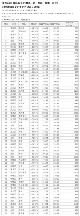 ■城北エリア 10年騰落率ランキング(2011-2021)