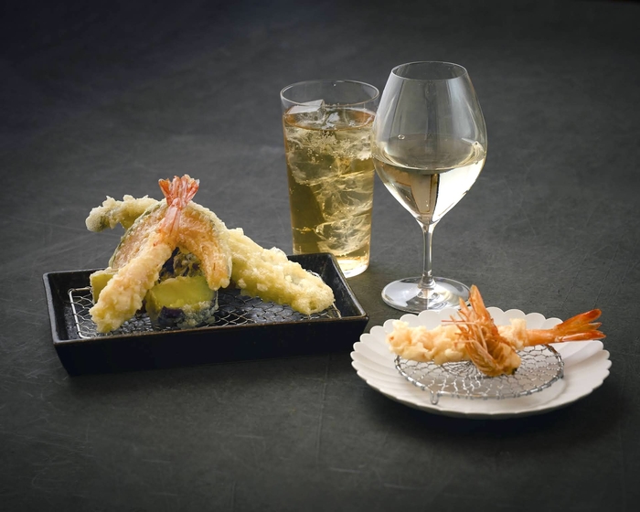 ディナータイムには、本格的な天ぷらコースもご用意。 カウンター越しで提供することで、揚げたてのおいしさをご堪能いただけます。 また、お料理によく合うお酒も豊富にご用意しております。