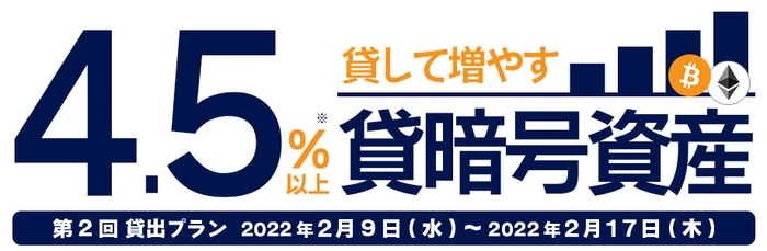 東京ハッシュ株式会社(本社:東京都千代田区、代表取締役:段 璽、以下当社)は、2022年2月9日(水)より、貸暗号資産サービスの第2回目の貸出プラン(年率BTC4.5%、ETH5.0% 2022年2月17日(木) 締切)へのお申込受付を開始いたします。