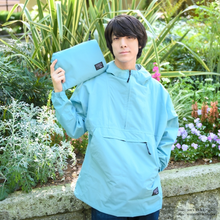 今回コラボレーションするのはアノラックパーカー、ボディバッグ、サファリハット、スツールの全4アイテム。ライブはもちろん、アウトドアやタウンユースでも活躍するシンプルなデザインで、SHE’S別注カラーの爽やかなブルーの生地にSHE’SとWpc.のロゴが入っています。また撥水・防水加工が施されているので雨の日の使用も可能です。