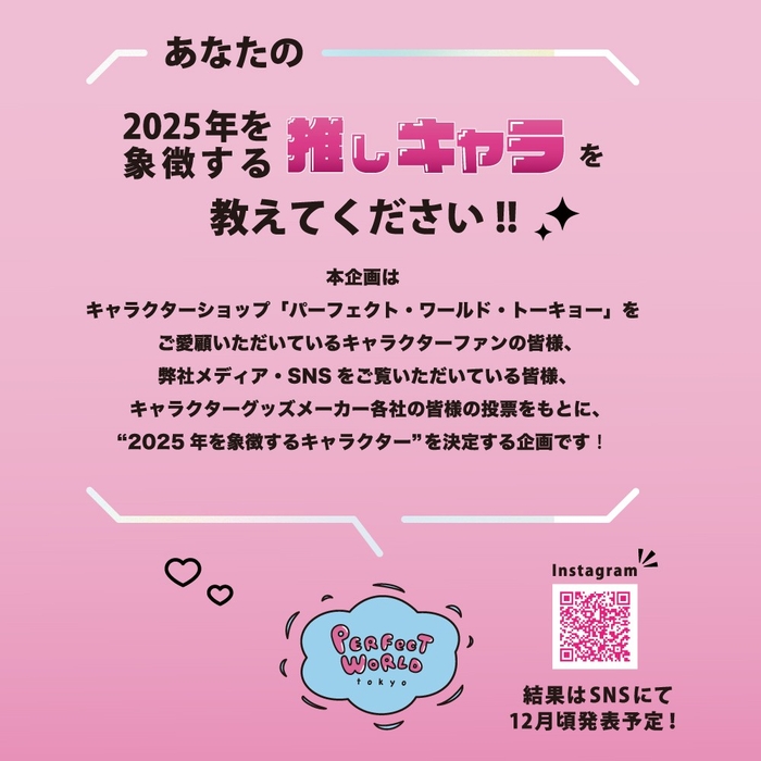 単なる人気投票ではなく、キャラクターを心から愛するファンの想いと、キャラクターに関わる企業担当者(いつも取材させていただいている方にも、もちろん私たちも参加します!)のリアルな視点をもとに選出する、新しいかたちの「私たち的キャラクターアワード」になったら楽しいな、と思い考えた企画です。
