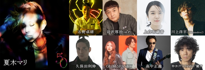 ゲストには、旧知の仲である石野卓球や久保田利伸・高中正義、夏木への楽曲提供を行った岩沢厚治(ゆず)、仲井戸“CHABO”麗市他、ライブでの共演経験もあるGLIM SPANKY、舞台「千と千尋の神隠し」で共演をした上白石萌音、ドラマで親子共演を果たし話題になった川上洋平([Alexandros])など、10周年のお祝いに駆け付けた豪華ゲストとのここでしか見られない共演も見どころとなる。