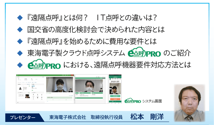 【東海電子 無料WEBセミナー】2022年4月より始まる『遠隔点呼』法令セミナー2月4日(金)、14日(月)開催のお知らせ