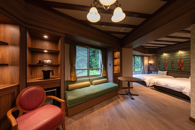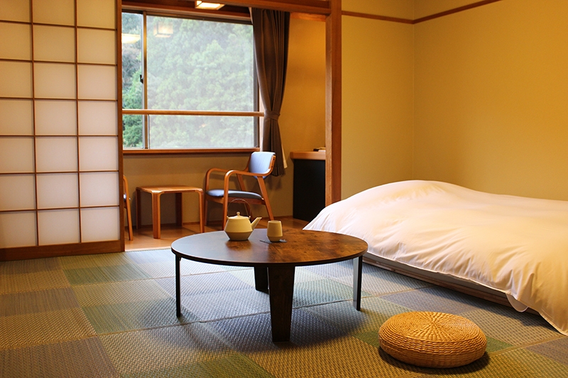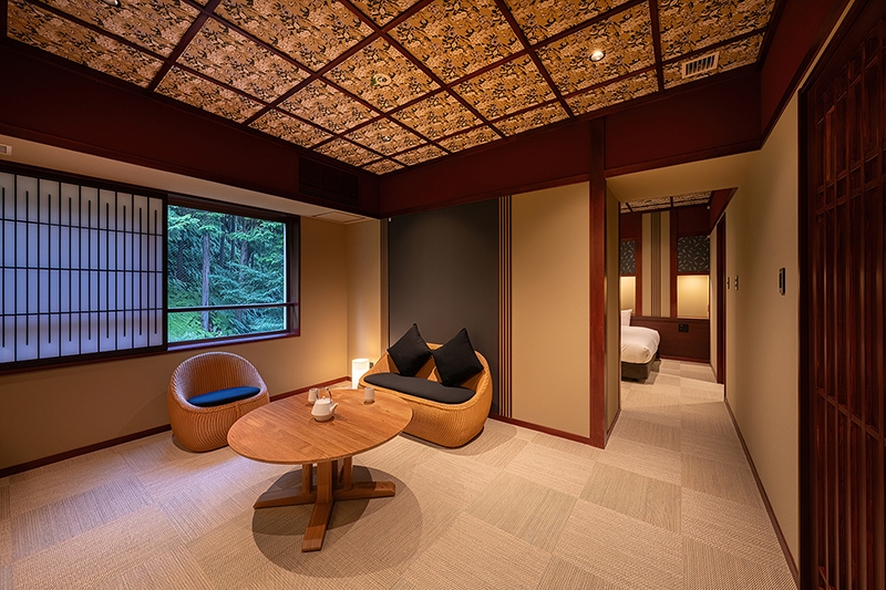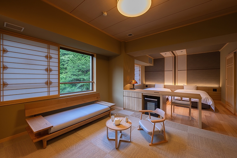 日本の伝統とモダンが融合した空間。アクセントに日本の美意識、自然素材のぬくもりを感じることができるお部屋となります。2024年10月からはお一人様部屋も。