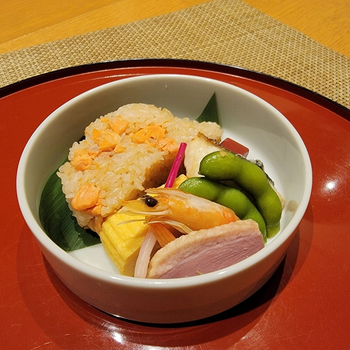 さらに、「Kissa;co」では甘味箱と軽食を組み合わせたランチセットもご用意していますが、秋メニューではこれまでのミニちらし寿司またはいなり寿司に代わり、栗ご飯または鮭ご飯を取りそろえました。