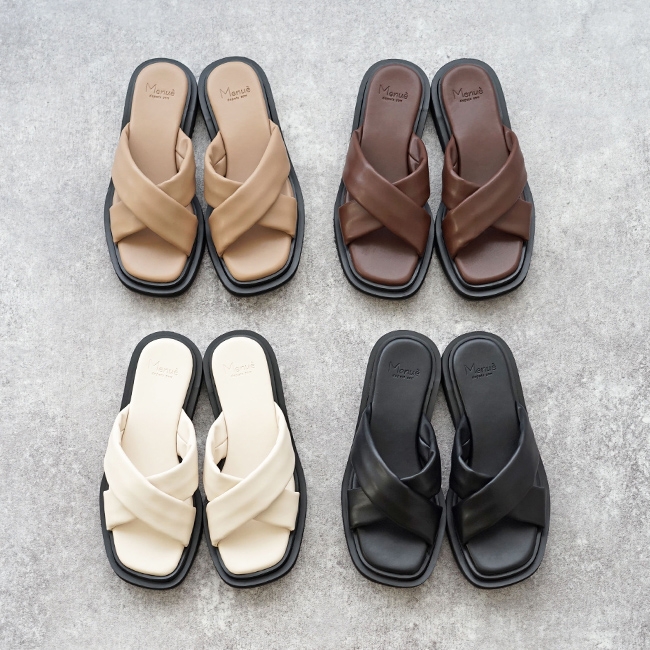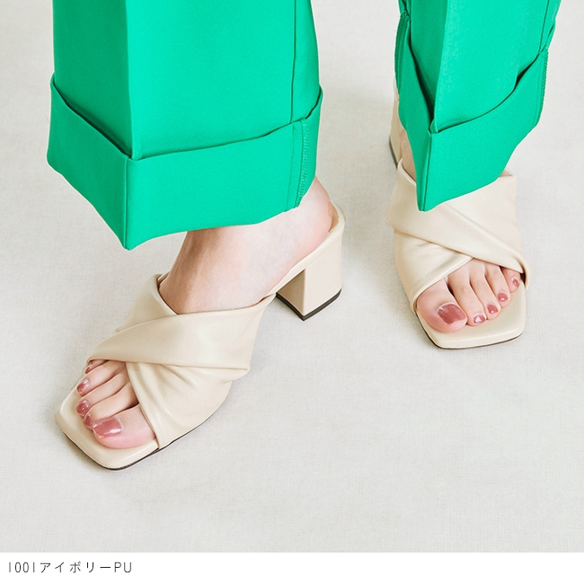 商品名 :menue (メヌエ) スクエアトゥギャザーミュールサンダル