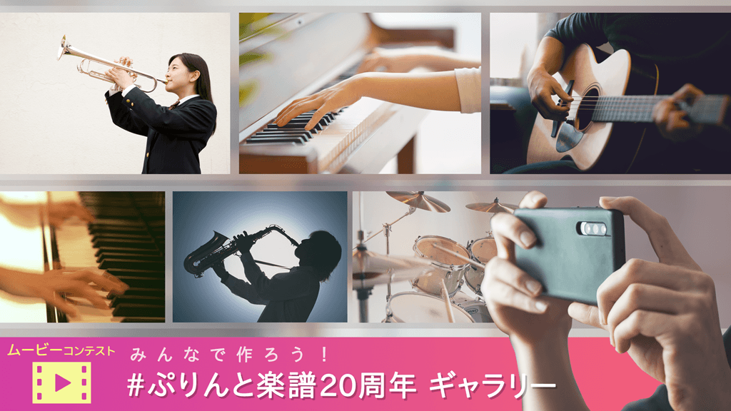 このような中において、日頃ぷりんと楽譜を利用いただいている方々のモチベーション向上や、動画配信という新たな音楽の楽しみ方への挑戦に繋がればとの思いから、このたび20周年記念企画の一環として演奏動画投稿キャンペーン『みんなで作ろう!#ぷりんと楽譜20周年ギャラリー【ムービーコンテスト】』を企画しました。