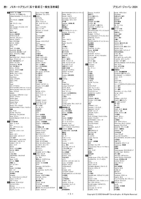 株式会社日経BPコンサルティング(東京都港区)は、2024年3月22日に発行予定の「ブランド・ジャパン2024」で調査対象となる1,500ブランド(一般生活者編1,000ブランド、ビジネス・パーソン編500ブランド)を発表しました(表1~3)。