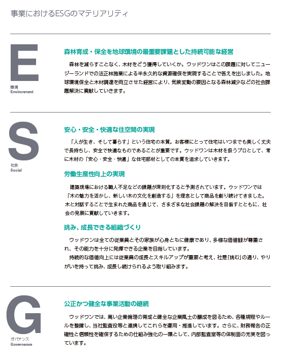 ダウンロードページ: https://www.woodone.co.jp/company/report/