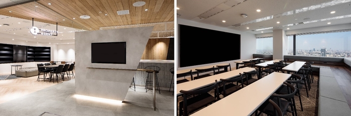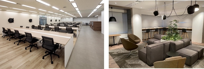 当社の新オフィスはフリーアドレス席となっておりますが、新型コロナウイルス感染防止策として在宅勤務とオフィス勤務を併用していることから、従前よりも席数を削減いたしました。席数は社員数150名以上なのに対して120席となっております。一方で、ソファ席やオープンスペースの打合せ席を多く作り、社員同士がコミュニケーションを取りやすい環境を整えております。