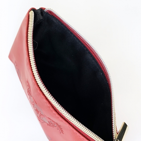 2つ目は、こちらのワインレッド色のレザー風ポーチです。柱の9人を連想させるモチーフが下部にデザインされていてとってもオシャレですよね!サイズは、11×17.3×3.5㎝ですよ。