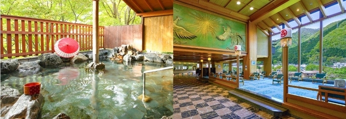 鬼怒川の清流はロビーラウンジや(一部)客室から愛でるのみならず、露天風呂では、川のせせらぎに癒しのひと時を感じていただくことができます。