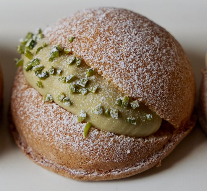 ふわふわのビスキュイ生地に、ピスタチオペーストを練り込んだバタークリームをたっぷり絞りました。トッピングしたピスタチオのダイスがアクセントとなり、濃厚な味わいをご堪能いただけます。