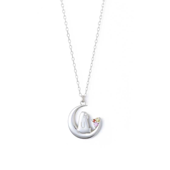 お月さまにちょこんと座り、まるで夜空を眺めているようなくまモンがキュートなネックレス。