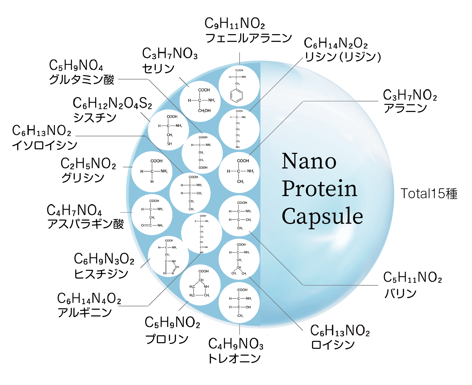 配合成分 : 独自原料ナノプロテインカプセル(TM)、バクチオール、