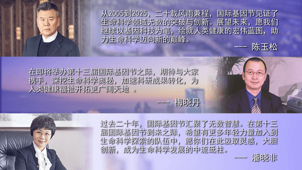 国際ゲノムフェスティバルの共同発起人であり、大会委員長を務める陳玉松氏、同じく共同発起人で、大会執行委員長の梅暁丹氏、大会事務長の潘暁非氏から、祝福のメッセージが寄せられた。