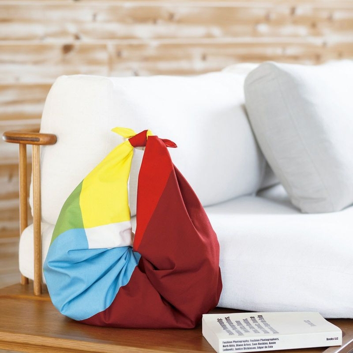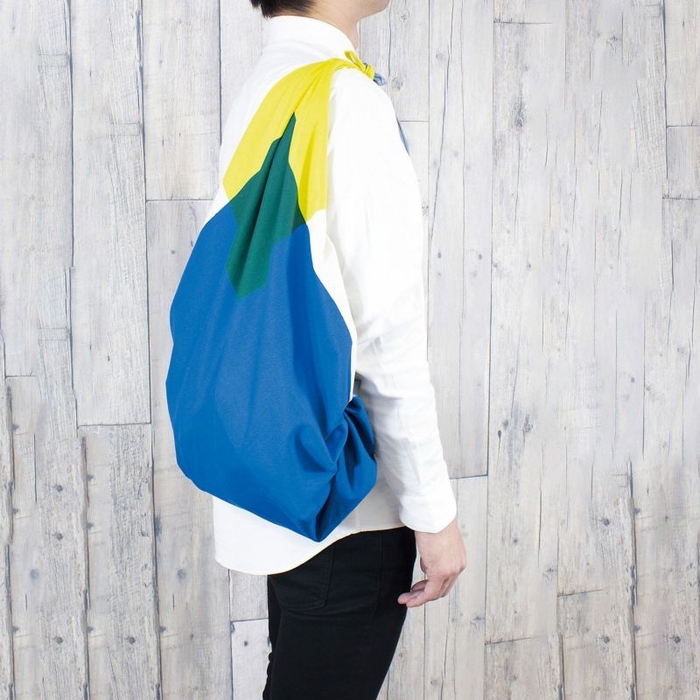 オーガニックコットンを使用した、人と環境にやさしい風呂敷。手作業で色を染め重ねているため、1枚1枚わずかに表情が違い、包む向きによって色や柄が大胆に変わるデザインも魅力的。自分用にも、ちょっとした贈り物にもオススメ。