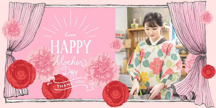 今年の母の日は5月8日。オリジナル割烹着や日傘、お洒落風呂敷etc...母の日に実用的なギフトはいかが?
