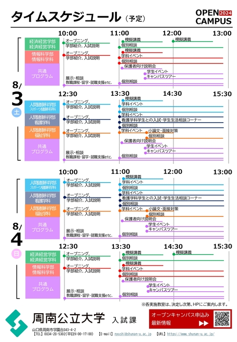 今年4月に3学部5学科を新設した周南公立大学。3学部5学科設置後、初となるオープンキャンパスを8月3日(土)4日(日)に開催します。