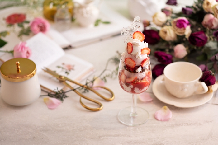 ※カジュアルなカフェスタイルで花のワークショップを行いながら、旬の果物を主役にしたパフェセットをご提供いたします。