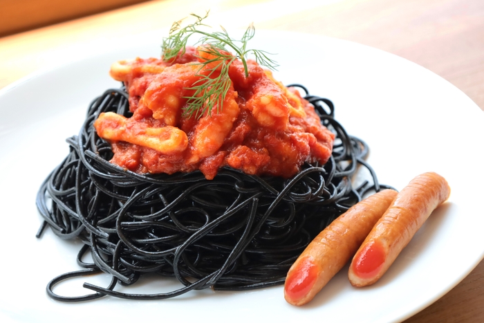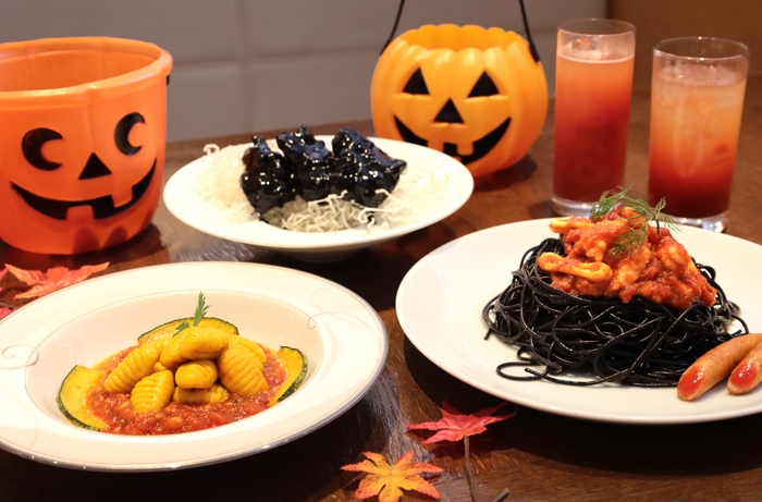 インパクト抜群の「黒い唐揚げ」や、真っ赤なソースが妖しく映える「イカ墨パスタ トマトソース」、かぼちゃの優しい甘さが楽しめる「かぼちゃのニョッキ」など、見た目はちょっと怪しげなのに一口食べるとやみつきになる料理をご用意しました。