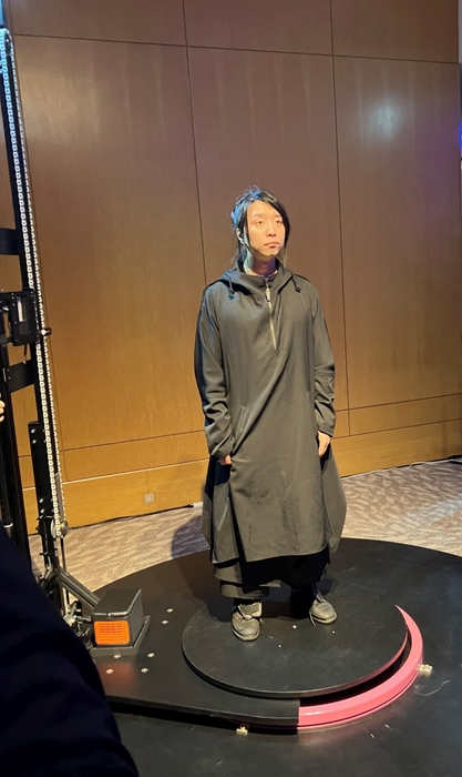 *:3Dスキャン装置は、スマートフォンのアプリを利用して、1台で周囲360度から撮影すると、数分で立体画像を作成できるものです。大規模言語モデルや最先端AI技術を活用したデジタルアバター型ID基盤「Mirrored Body®」によって、口元が動き、自然な受け答えの会話ができることを目指しています。