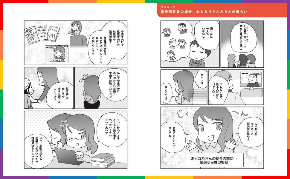 本書でご紹介するさまざまなライフストーリーから、「性の多様性と共に生きる人の視点に立って考えてみる」こと、またマジョリティも含めた、「全ての人が性のグラデーションの中で存在している」ことと向き合うきっかけとして役立てば幸いです。