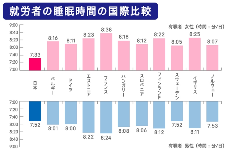 ■睡眠時間の国際比較と、睡眠障害が与える影響