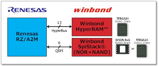 台湾台中市/日本横浜市発 - 半導体メモリソリューションの世界的リーディングサプライヤーであるウィンボンド・エレクトロニクスは2021年7月7日、HyperRAM(TM)およびSpiStack(R)(NOR+NAND)とルネサスのArm(R)ベース マイクロプロセッサ(MPU)RZ/A2Mを組み合わせて動作を確認したことを発表しました。これは、スマートアプライアンス、サービスロボット、産業機械に組み込まれた人工知能(AI)イメージングの高速処理用に設計されたRZ/A2Mのお客様が、現在組み込みシステムの主流であるDRAM、NORフラッシュ、NANDフラッシュなど、あらゆるタイプの外部メモリに対してウィンボンドから技術サポートおよび長期供給を受けられることを意味します。