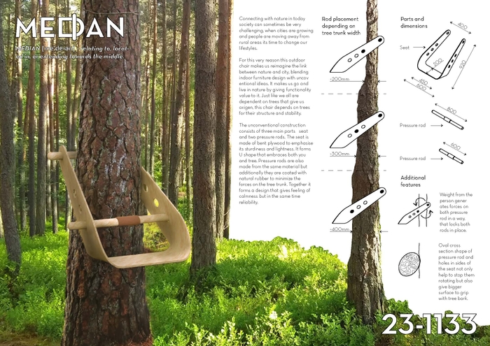 隈研吾賞(最優秀賞)はユルギス・グラスマニスさん(ラトビア)の作品です。コロナ後となるこれからの時代、森や林の中で本を読んだり仕事したりすることがもっともっと増えてくると思います。そういう時にぴったりの家具が出てきたなと思いました。これからの未来を予言するような家具だと感じています。木にもたれかけるデザインですが、木に対する優しさがある。あまり木が痛まないようにやさしさがある家具であり、ユルギス・グラスマニスさんはそんな優しさをもっているデザイナーです。
