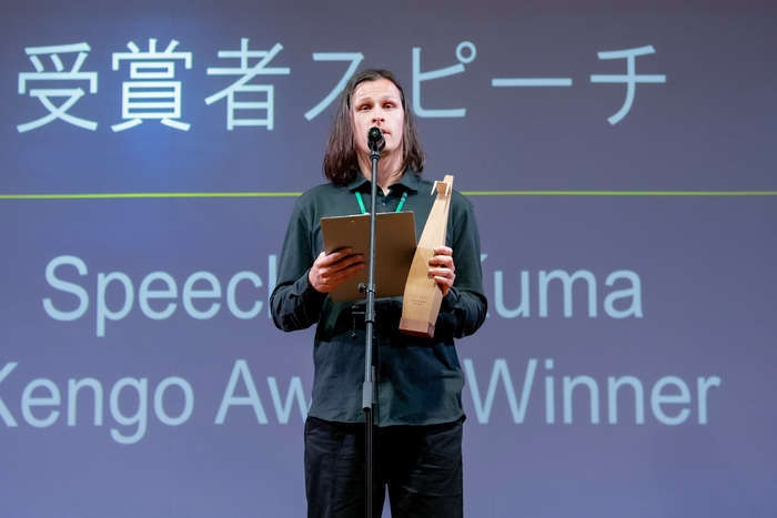 最優秀賞となる隈研吾賞はラトビアのユルギス・グラスマニスさんが受賞。優秀賞には、マーコ・フローリアン・ベアーさん(ドイツ)、イ・ヨンヒさん(韓国)、イ・ヒョンジョンさん(韓国)の3作品が受賞しました。