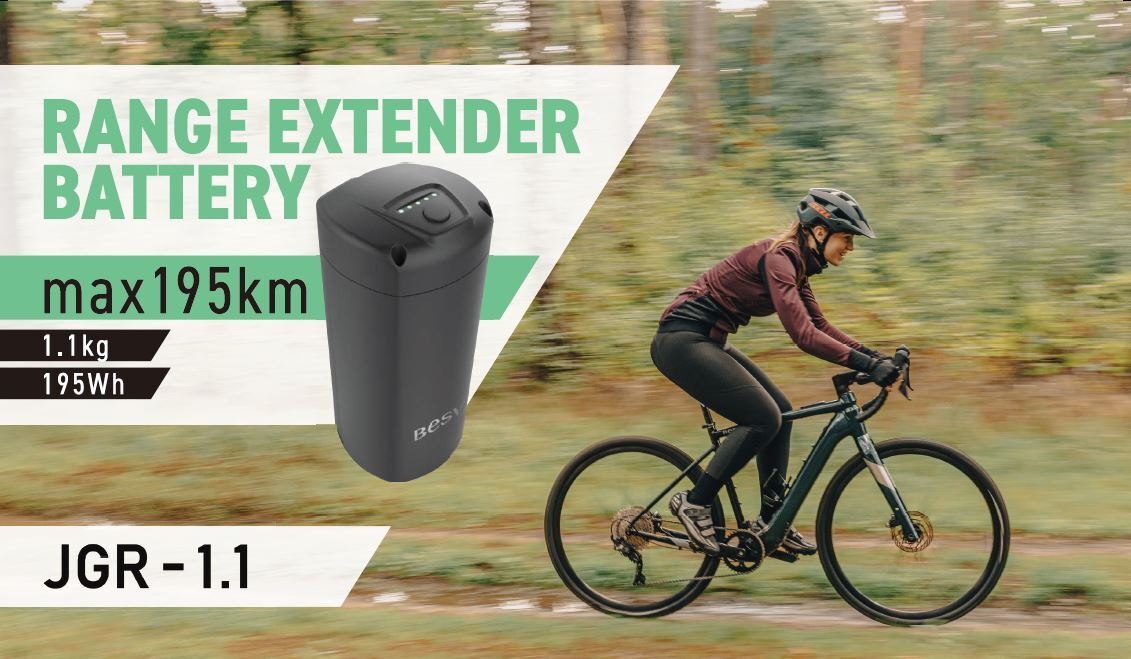 また、BESVの独自技術によって、未走行時や、アシストOFFでの走行時、高速走行時、下り坂走行時など、メインバッテリーが出力していない際、レンジエクステンダーバッテリーから、車両本体のメインバッテリーに充電することが可能となります。これにより、バッテリー完全内装型のJGR1.1の充電環境に関するデメリットを解消し、より多くのユーザー様にJGR1.1をご利用いただくことが可能になります。