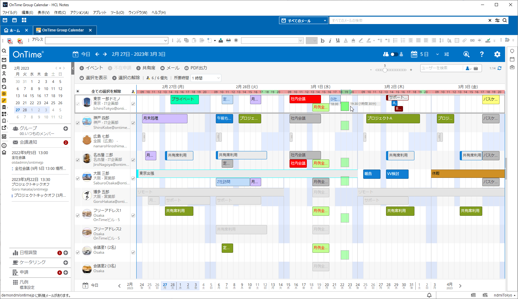 主に他製品からOnTimeへ移行する際に、利用ユーザーが違和感なく移行いただけるよう実装したビューとなります。もちろんこのプランナービューでも、メンバーを選択してプリセット状態で開く会議作成機能や予定のドラッグによるコピーや移動などは、他のビューと同様にご利用いただけます。