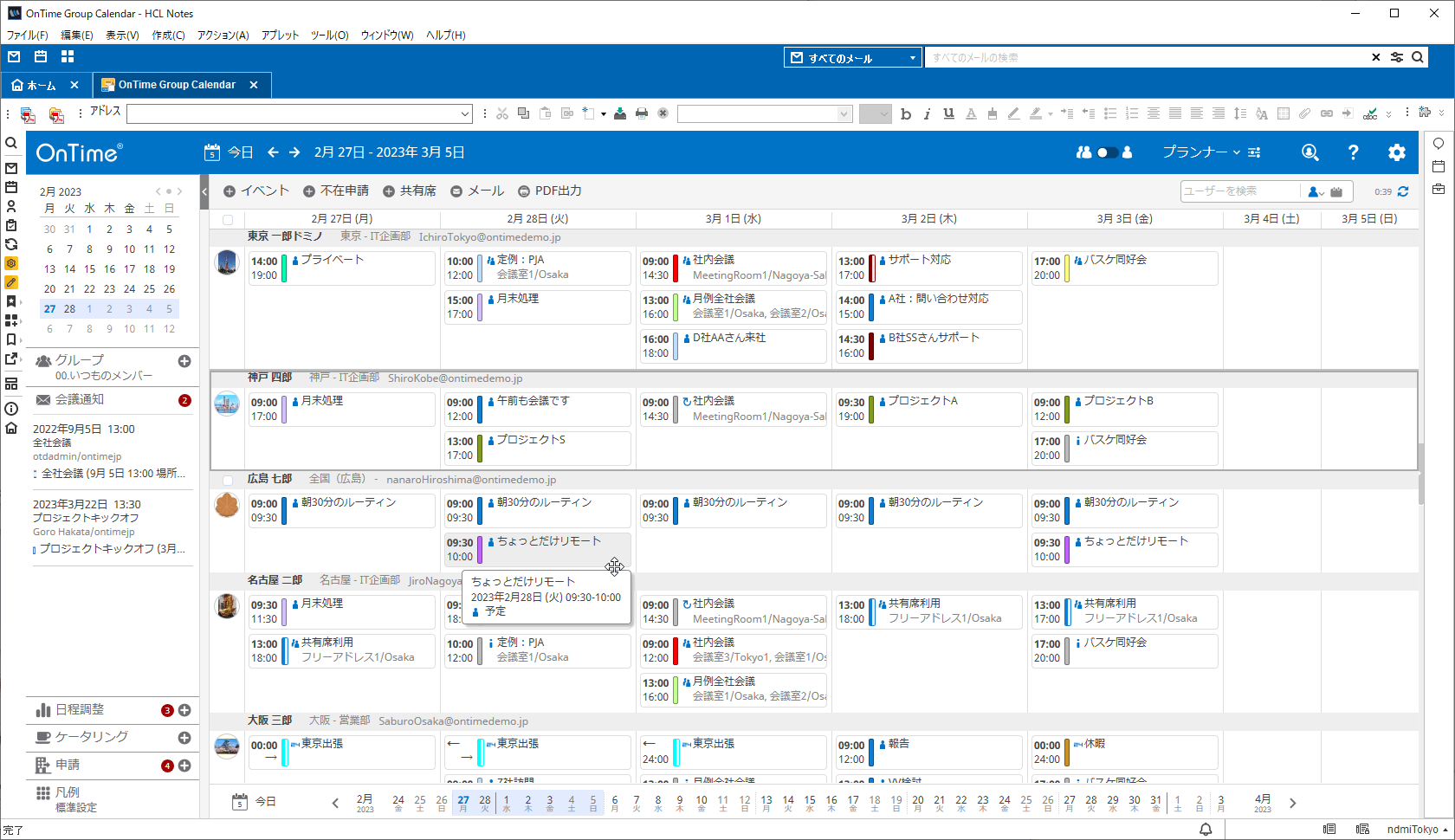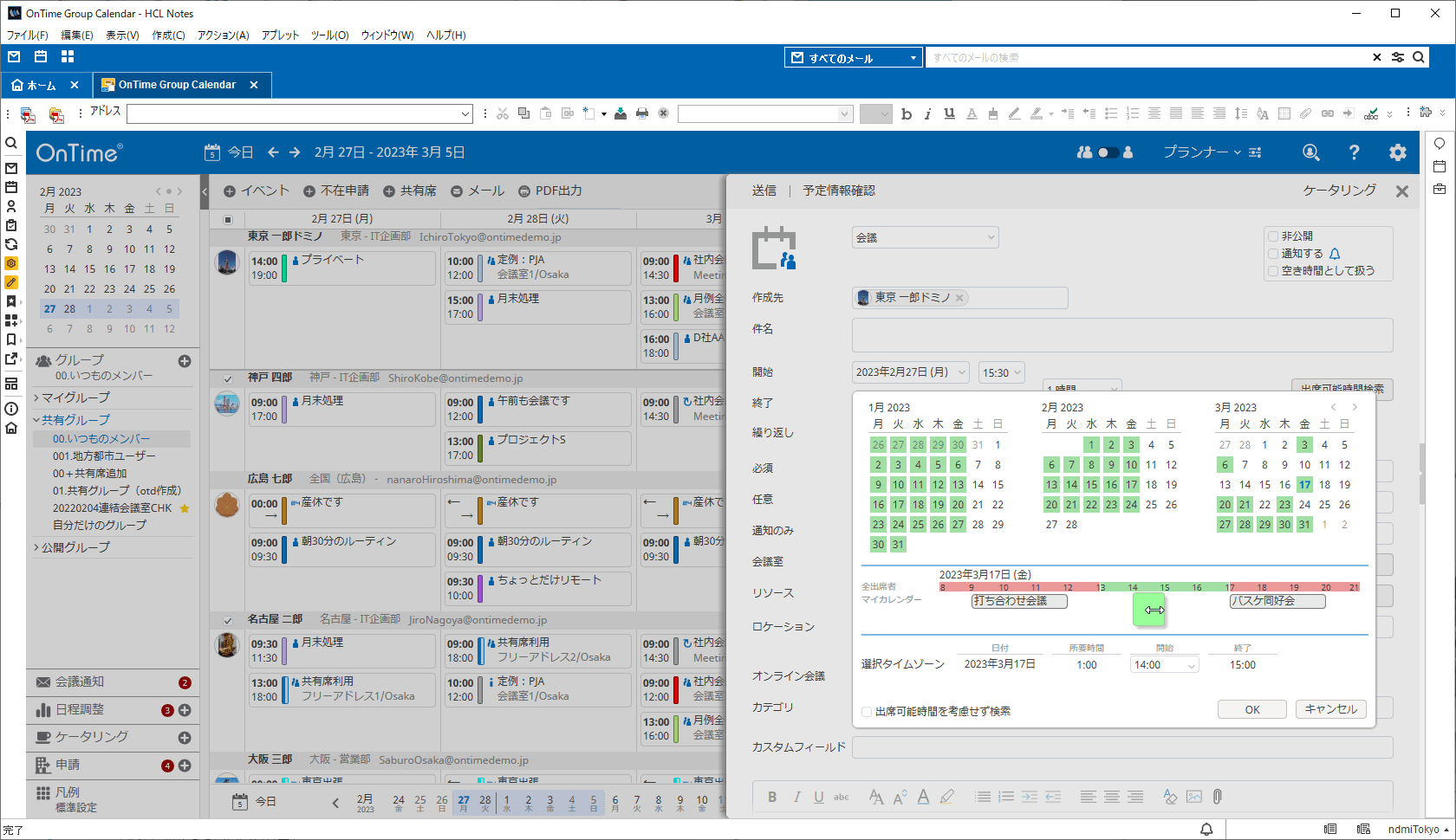 「OnTime(R) Group Calendar for Domino」デモサイト