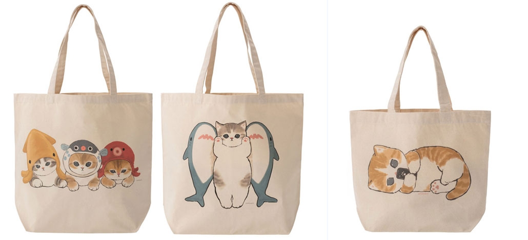 右)●mofusand コンビニサイズエコトート 3種 各1,540円(税込)