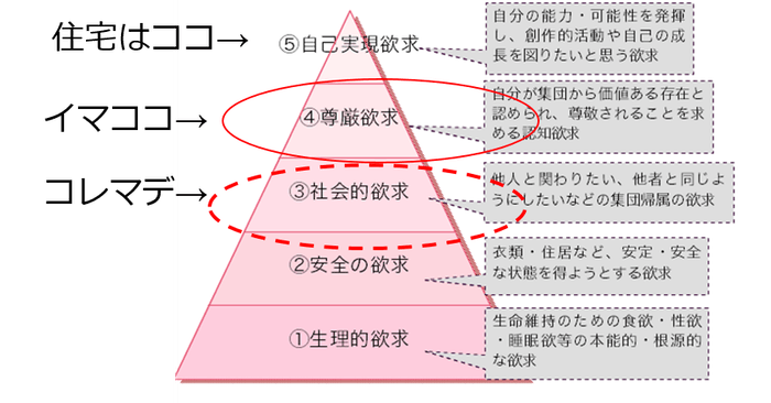 この現象は、住宅物件の動向とマズローの5段階欲求説理論に照らせば理解できます。