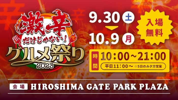 広島ホームテレビはTSP太陽との共催で、9月30日(土)~10月9日(月・祝)まで、ひろしまゲートパークプラザにて「激辛だけじゃない!グルメ祭り2023」を開催します。