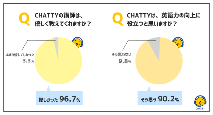 アンケートの結果、90.3%の生徒が「CHATTYは英語力の向上に役立つ」と