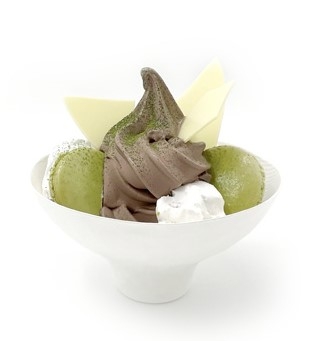 濃厚なアズキのソフトクリームにサクサクのメレンゲとホワイトチョコレート、西尾市の抹茶パウダーをのせました。口の中いっぱいにあずきの風味が広がります。