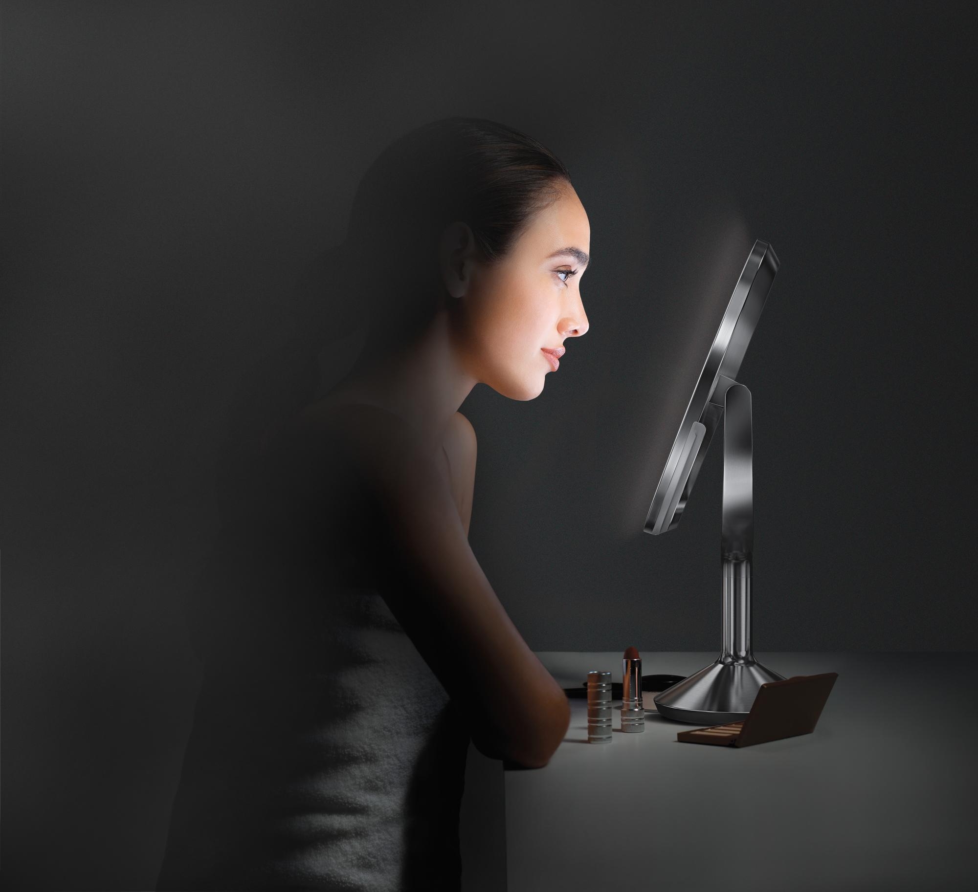 特許取得済みのトゥルーラックステクノロジーで、均一で影のないライティングを実現しました。他の商品にはない正確な発色で、美しいメイクを実現するライティングを提供します。顔を近づけるだけでライトがオン、離れるとオフになるので、汚れた手でミラーに触れる必要もありません。