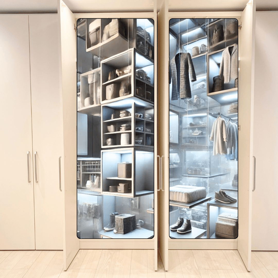 サイバーとフィジカル、バーチャルとリアル、そんな空間を高度に融合させ、家ナカ収納の全く新しい機能として、ce-fit「間仕切」「間仕込」シリーズすべての商品に、4次元収納をおつけして販売することに至りました。