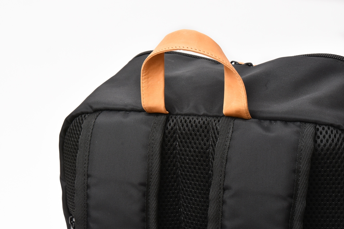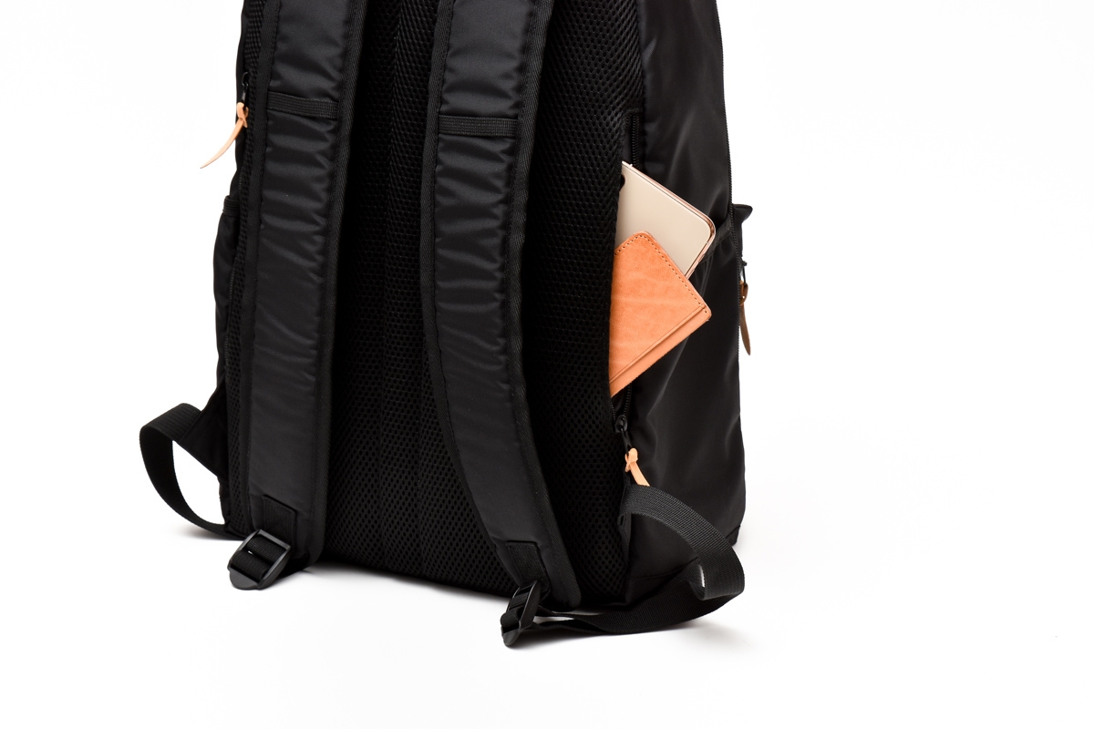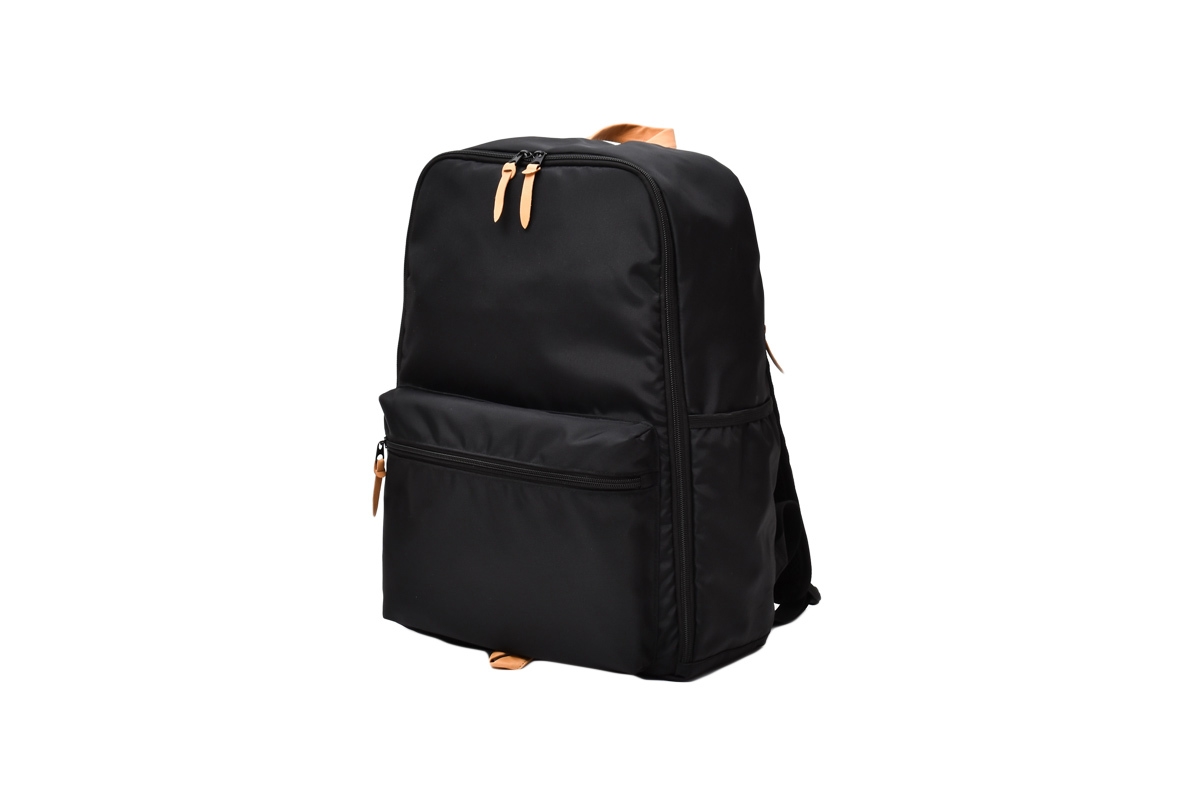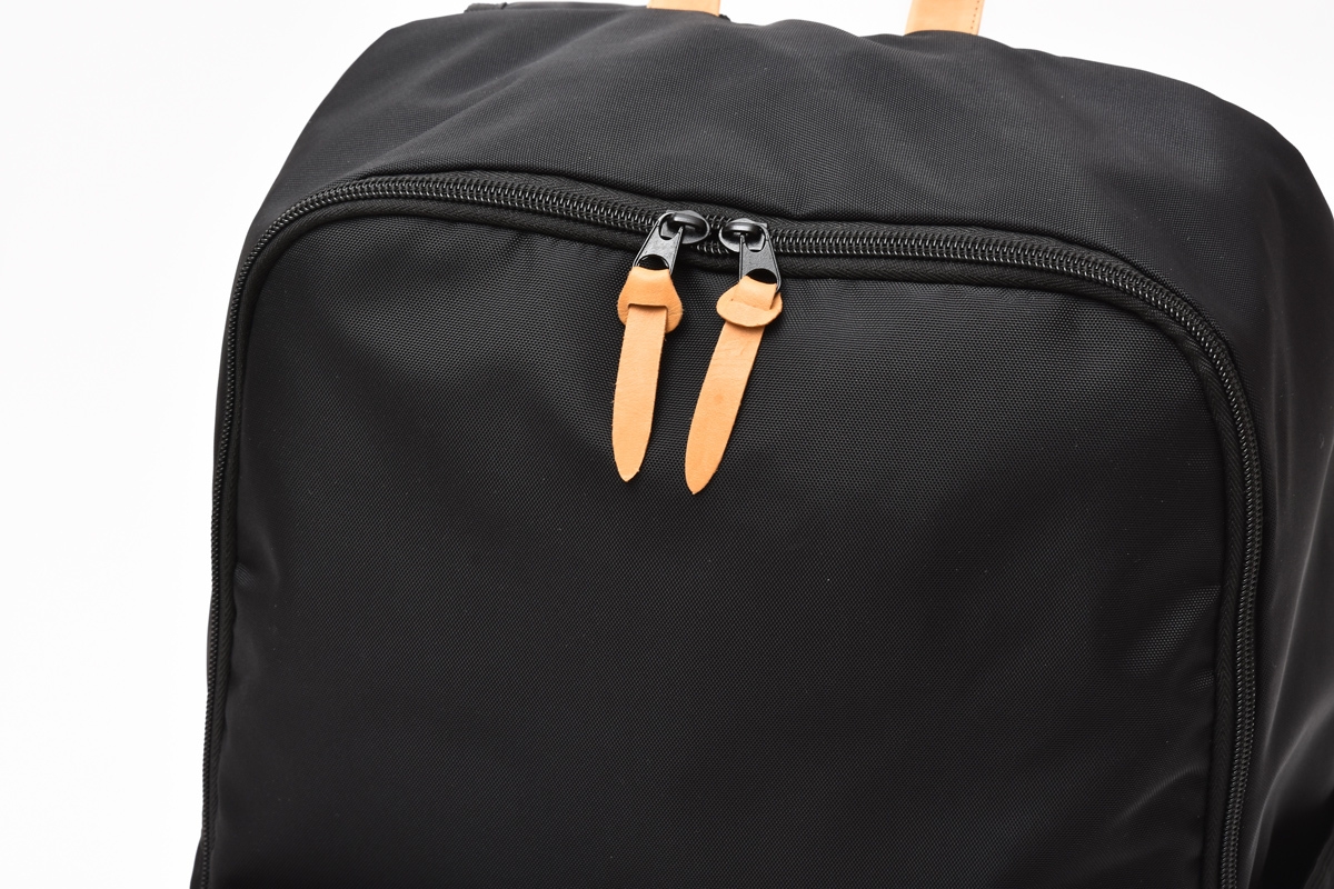 外装は高密CORDURA(R) ECO 撥水加工を施したリサイクル素材を使用し、ファスナーの引手やバッグ上部の持ち手などには他の製品で不要となった端材を利用し、環境にも配慮したモノづくりを目指しております。