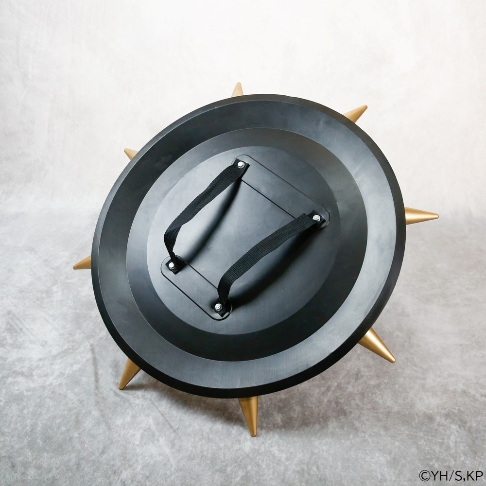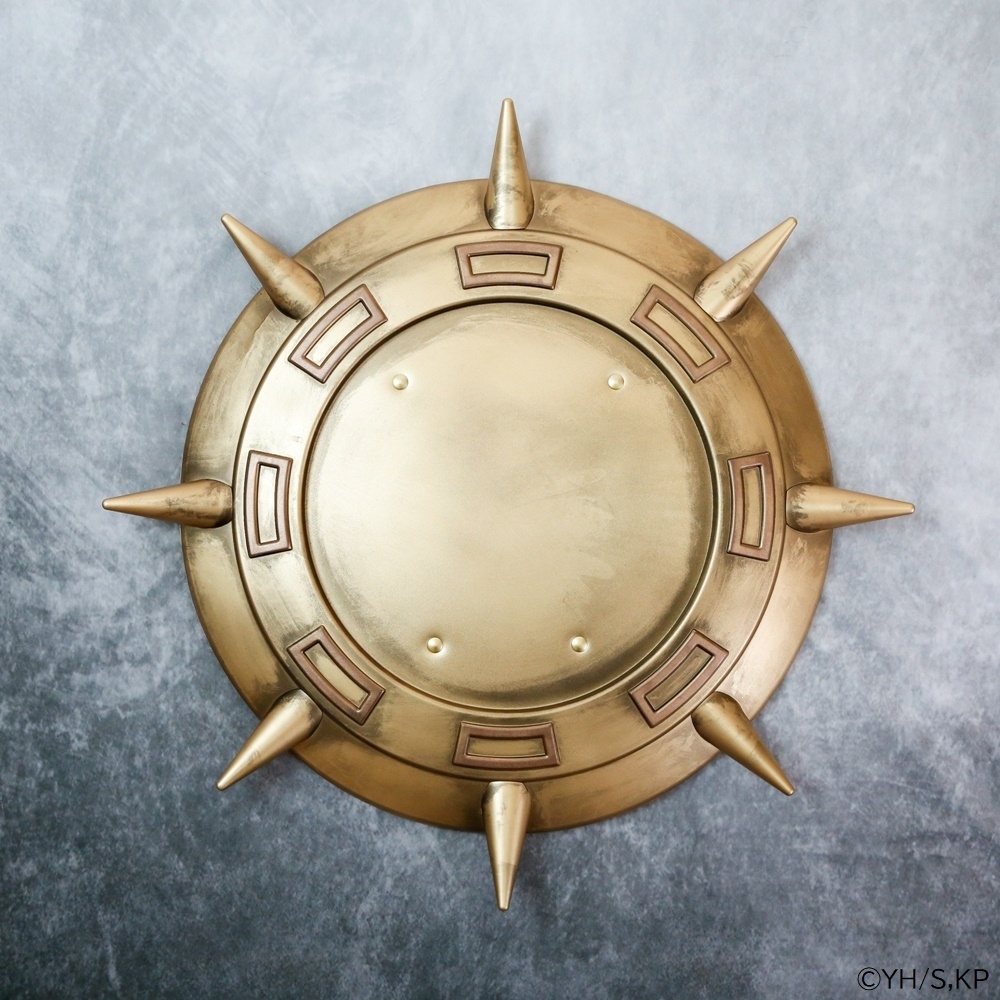 信がヒョウ公から託された盾を原寸大サイズにて再現した武器フィギュアです。使い込んだ質感を再現したアンティーク調の塗装と、特徴的なトゲを再現しました。剣とセットで信になったような気分が味わえます。
