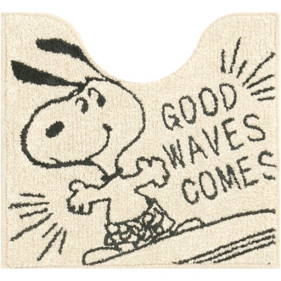 サーフィンデザインのスヌーピーがキュートな、アイボリーのトイレマットです。カラーがシンプルなので、どんなトイレにも合わせやすそう♪
