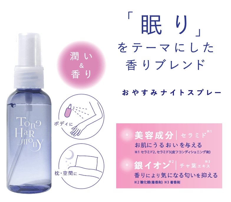 そこで、ビューティーワールドは穏やかな睡眠をサポートする「トーンハーモニー」というブランドを立ち上げました。薬に頼るのではなく、自然とリラックスして眠れる環境づくりのお手伝いになればと思っています。