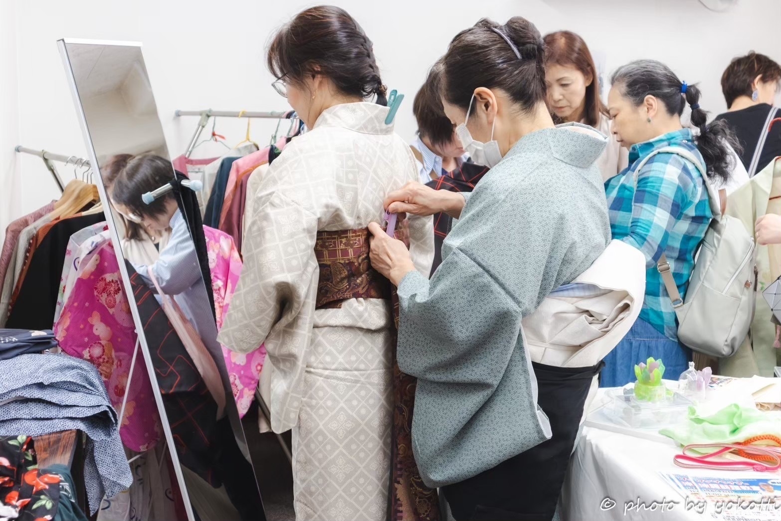 すると、Instagramの投稿などを見た主婦達が「楽しそうだ」と続々と集まってきました。堅実な主婦たちは母親の着物や、リサイクルで購入した着物でイベント参加してくださり、そのうち、写真を撮ったり、水引アクセサリー作りをしたり、ご寄付いただいた反物から帯やカバンを作ったり、イベント考案からすべて自分たちで行うようになりました。