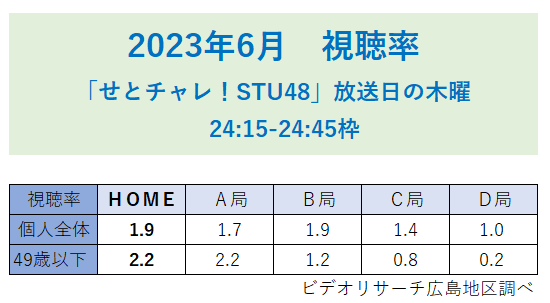 【せとチャレ!STU48】2023年6月 月間視聴率 個人全体1位・U49 5カ月連続の1位