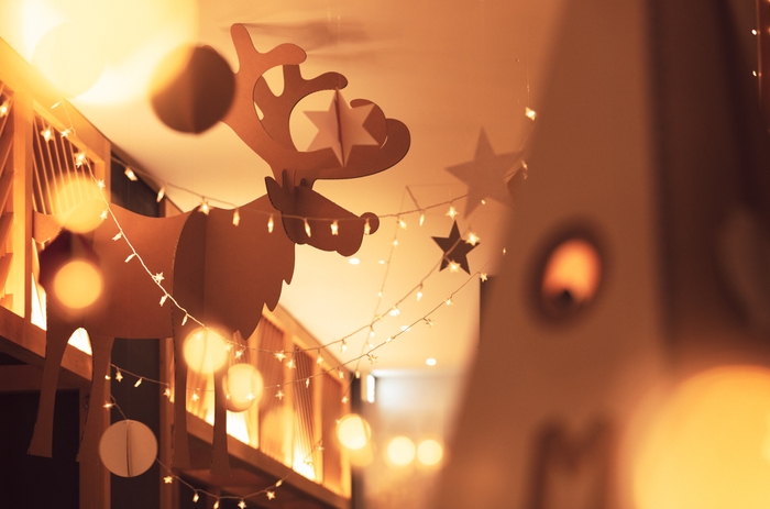 ダンボールクリスマスでは、高さ2mの「ダンボールクリスマスツリー」が登場します。都電や赤ちょうちん、日本酒のとっくりと、大塚の街の名物や「OMO」の文字をくり抜いて模様にしています。さらに、同じくダンボールで作られたトナカイや雪の結晶や星などをモチーフにしたオーナメントの装飾もクリスマス気分を盛り上げます。